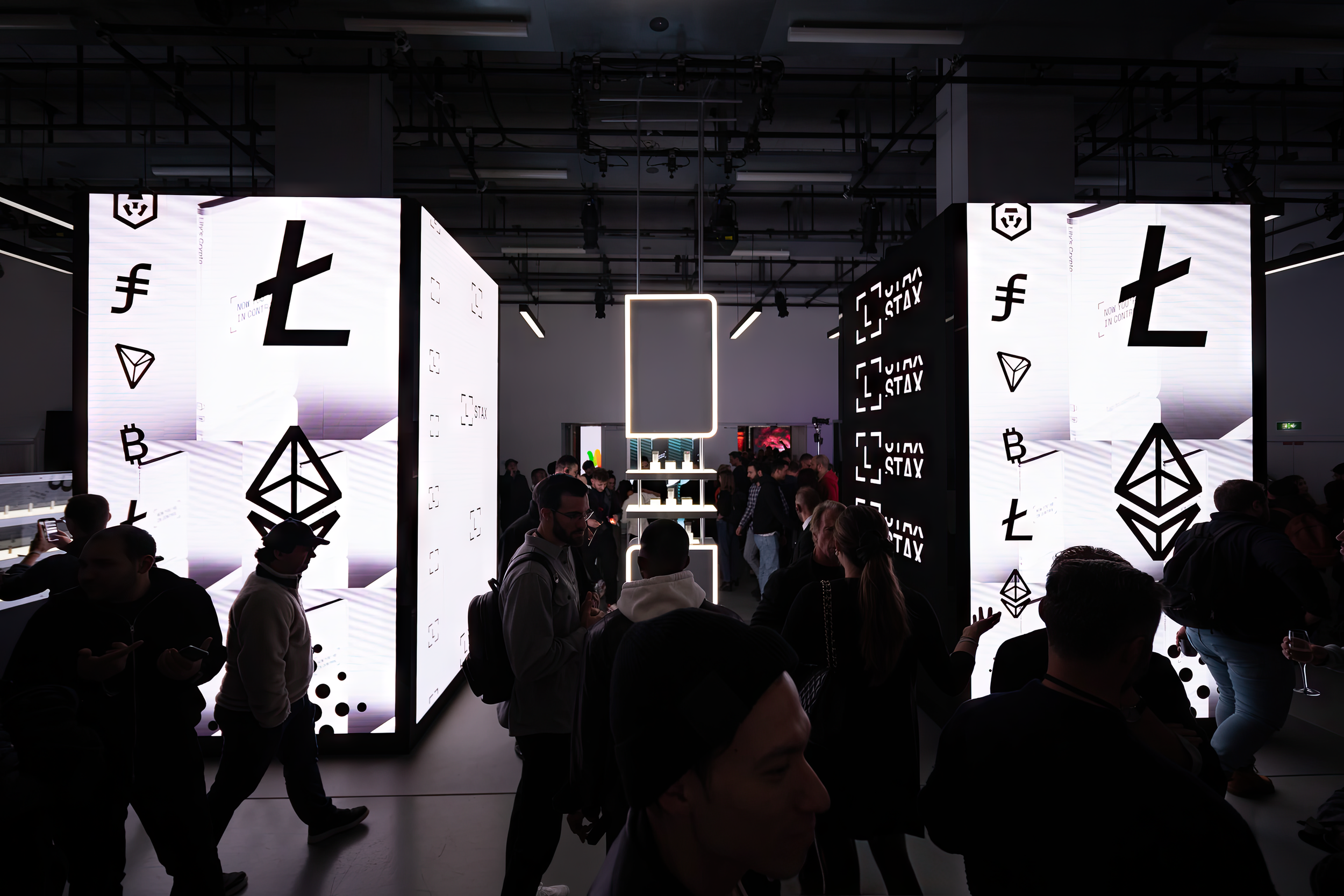 At the heart of the experience, 26 large-format LED panels pulsed with ambient storytelling, extending the STAX UI/UX into a dynamic, evolving landscape. This choreography of light and motion was the architecture’s living pulse, blurring the boundaries between product, interface, and environment.